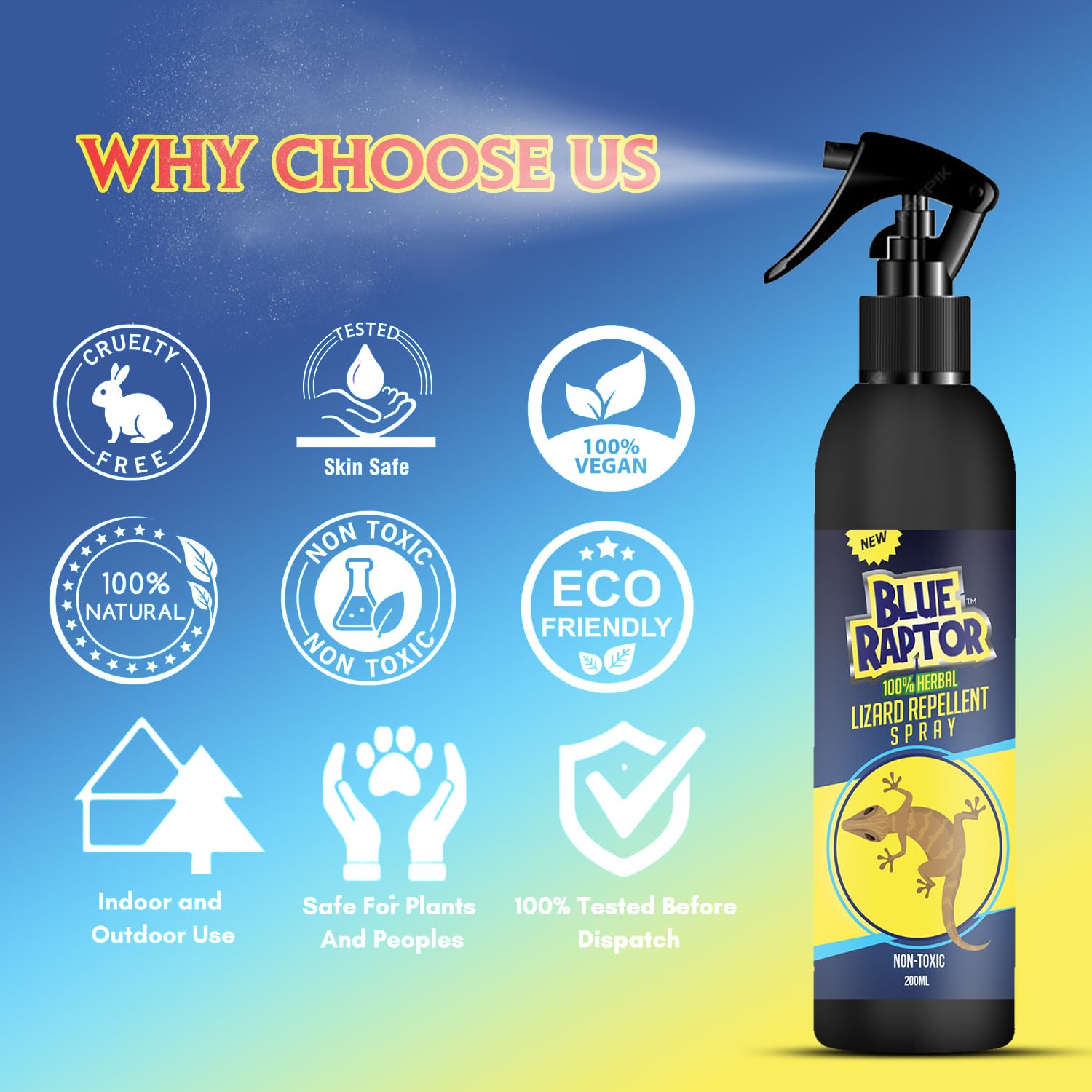 Blue Raptor Lizard Repellent Spray | 100% Natural & Eco-Friendly | Non-Toxic Plant-Derived Formula | Safe for Home and Food Areas | Effective Lizard Deterrent – 200ml (Pack of 1) – FORMULATION 3X