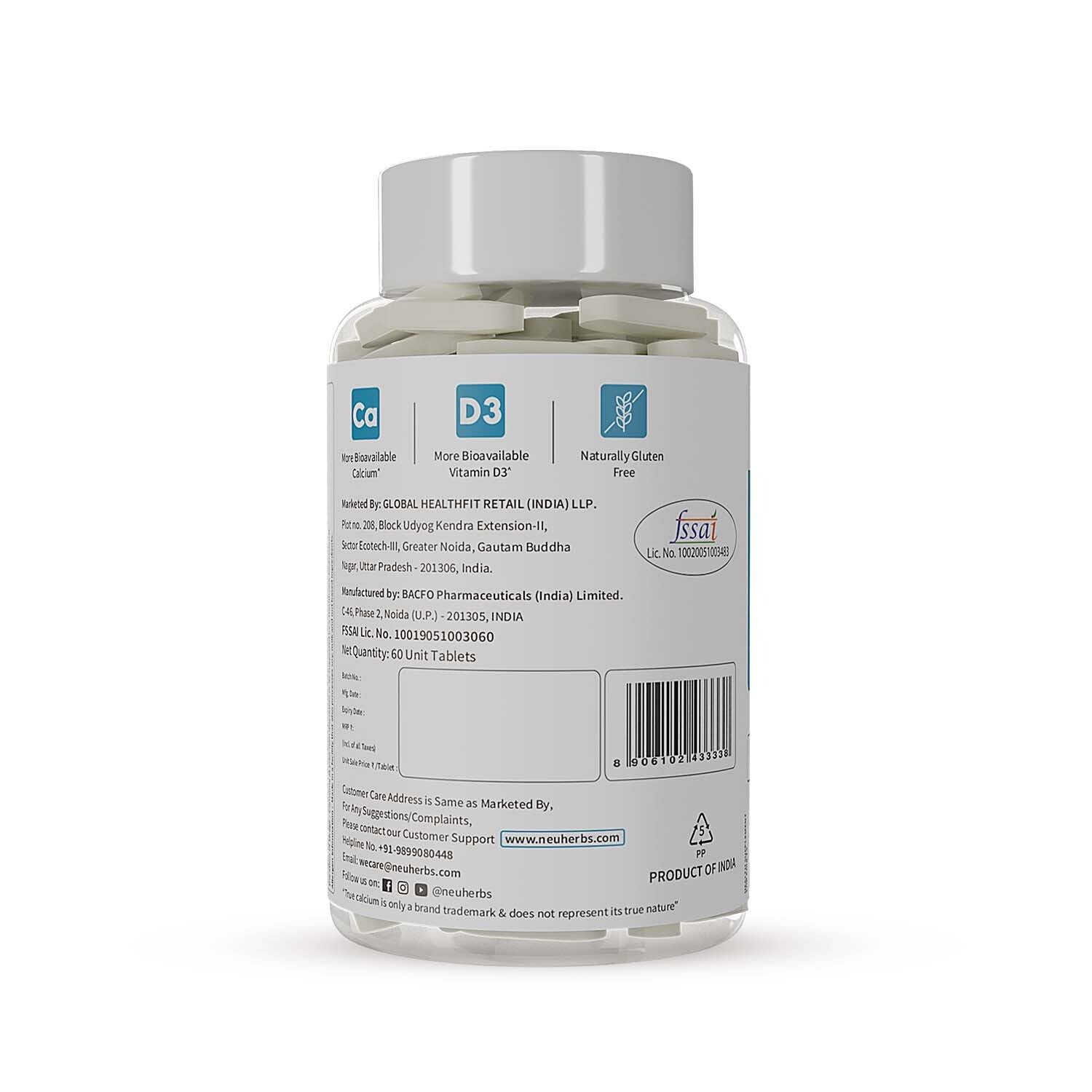 Neuherbs True Calcium 1000mg Supplement For Men & Women- 60 Vegan Tablets | Calcium tablets with Plant Based Vitamin D3 & Natural Magnesium For Healthy Bones & Joints.